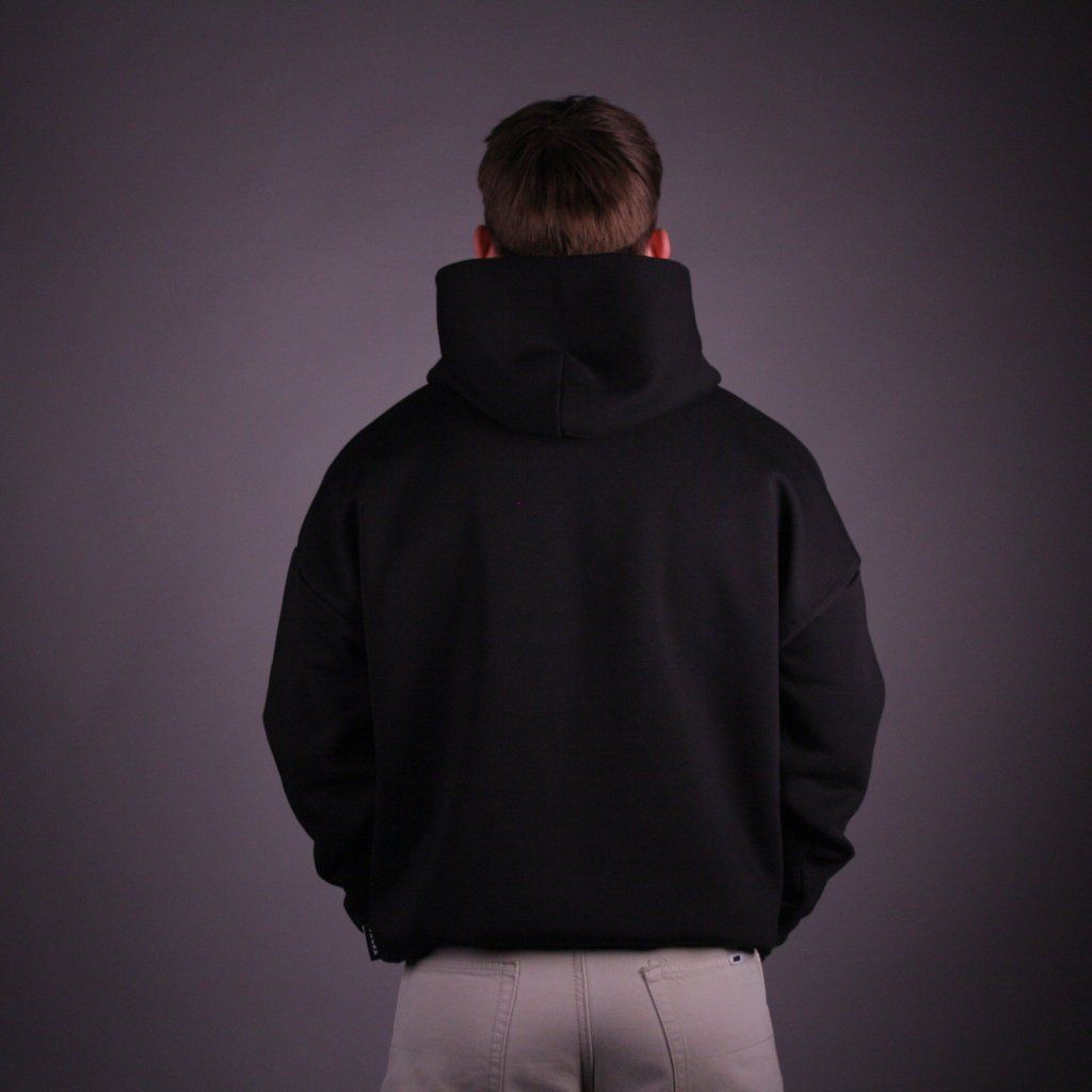 Mikina je vyrobena z kvalitní směsi 80 % předsrážené bavlny a 20 % recyklovaného polyesteru s gramáží 350 g/m². Materiál je pevný, odolný a zároveň příjemný na dotek s výrazným, plným omakem. Použitý fleece s nízkou srážlivostí pomáhá mikině dlouhodobě držet tvar a poskytuje spolehlivý komfort při nošení. Mikina má neutrální oversized střih s lehce spadlými rameny, který působí uvolněně a moderně. Kapuce s podšívkou ze stejného materiálu nabízí čistý minimalistický vzhled. Žebrované manžety a spodní lem zajišťují pohodlí při nošení a kapsa je navržena pro přirozené uložení rukou i drobných předmětů. Mikina má potisk.